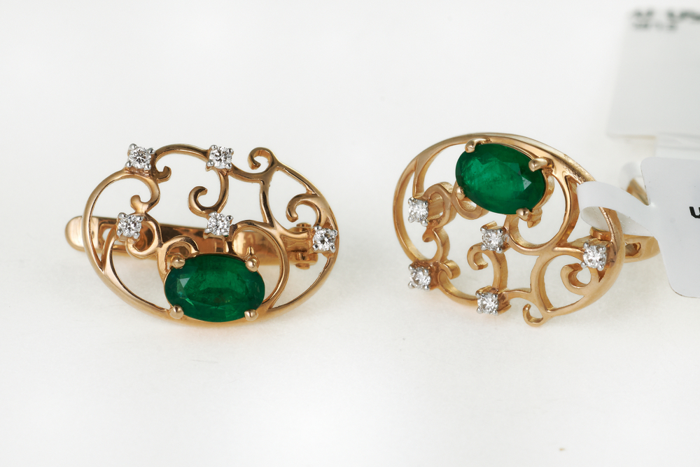 Zelta auskari ar briljantiem un smaragdiem